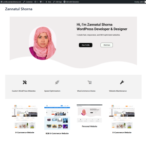 Hi! I’m Zannatul Shorna, a passionate and experienced WordPress Web Developer with a focus on creating dynamic, user-friendly, and fully responsive websites. With 3+ years of experience in WordPress design and development, I specialize in crafting custom themes, developing WooCommerce stores, and optimizing websites for speed, SEO, and usability.